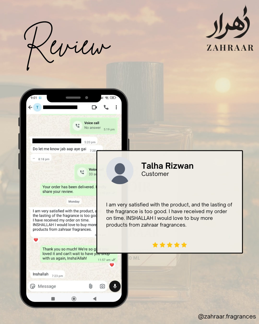 At Zahraar, every fragrance is crafted to leave a lasting impression — and our customers say it best. -